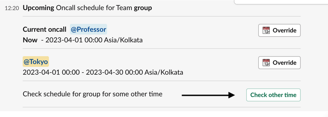 On clicking `Check other time` you can see oncall schedule of some time period too