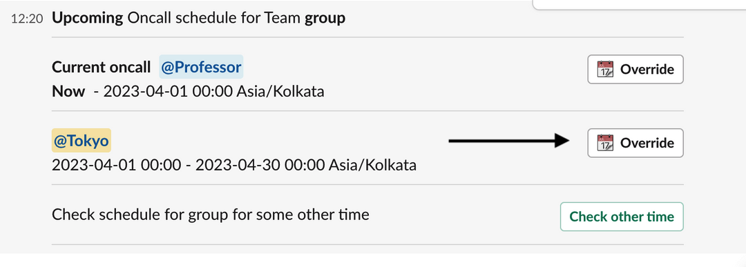 * Now, you can override that oncall user with a different assignee and customized time period